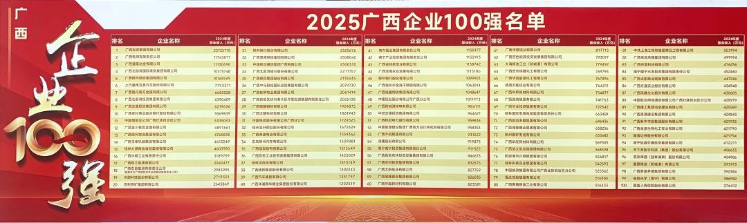 9月29日,由广西企业与企业家联合会、广西工业经济联合会共同主办的2025年广西企业100强发布会在南宁隆重召开。大会发布了“2025广西企业100强”“2025广西制造业企业100强”“2025广西服务业企业100强”榜单和《2025年广西企业100强发展报告》。参皇集团凭借稳健的综合实力与优秀的产业表现,位列广西企业100强榜单!